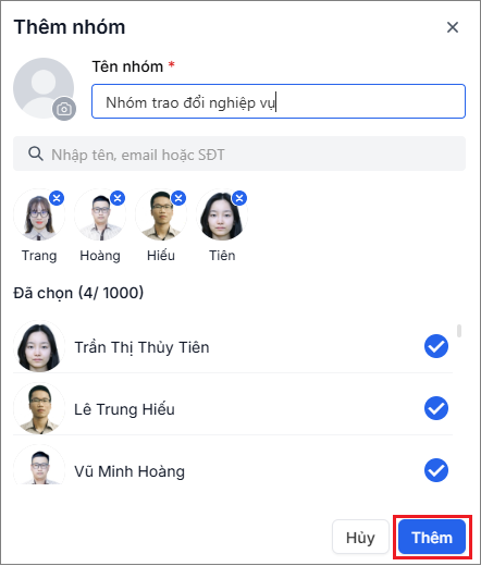- Nhấn Thêm để hoàn thành việc tạo nhóm