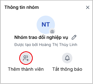 - Trong thông tin nhóm, nhấn vào biểu tượng Thêm thành viên