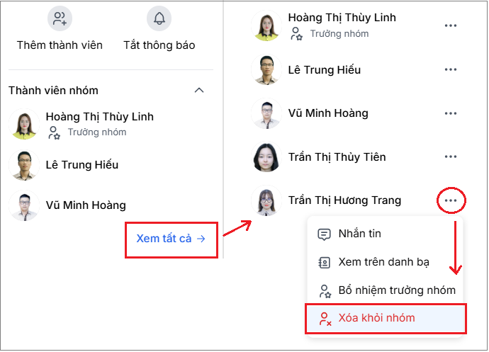 3. Xóa thành viên ra khỏi nhóm