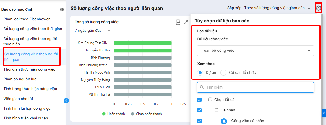 Báo cáo số lượng công việc theo người liên quan