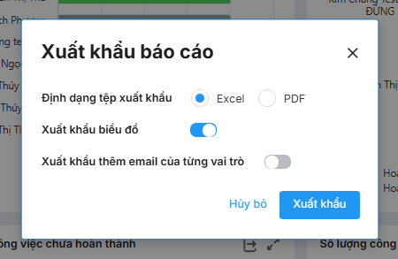 • Xuất khẩu ra file Exel hoặc PDF.