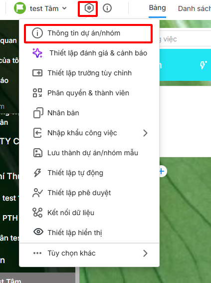 Bước 1: Truy cập vào Thiết lập \ chọn Thông tin dự án/Nhóm\ tích chọn mục Yêu cầu bổ sung lý do khi thay đổi hạn hoàn thành