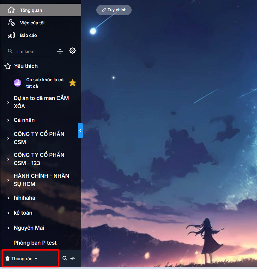 Khi các dự án/công việc nhóm bị xóa sẽ được lưu trữ tại khu vực Thùng rác. Trường hợp cần khôi phục công việc, thực hiện như sau: