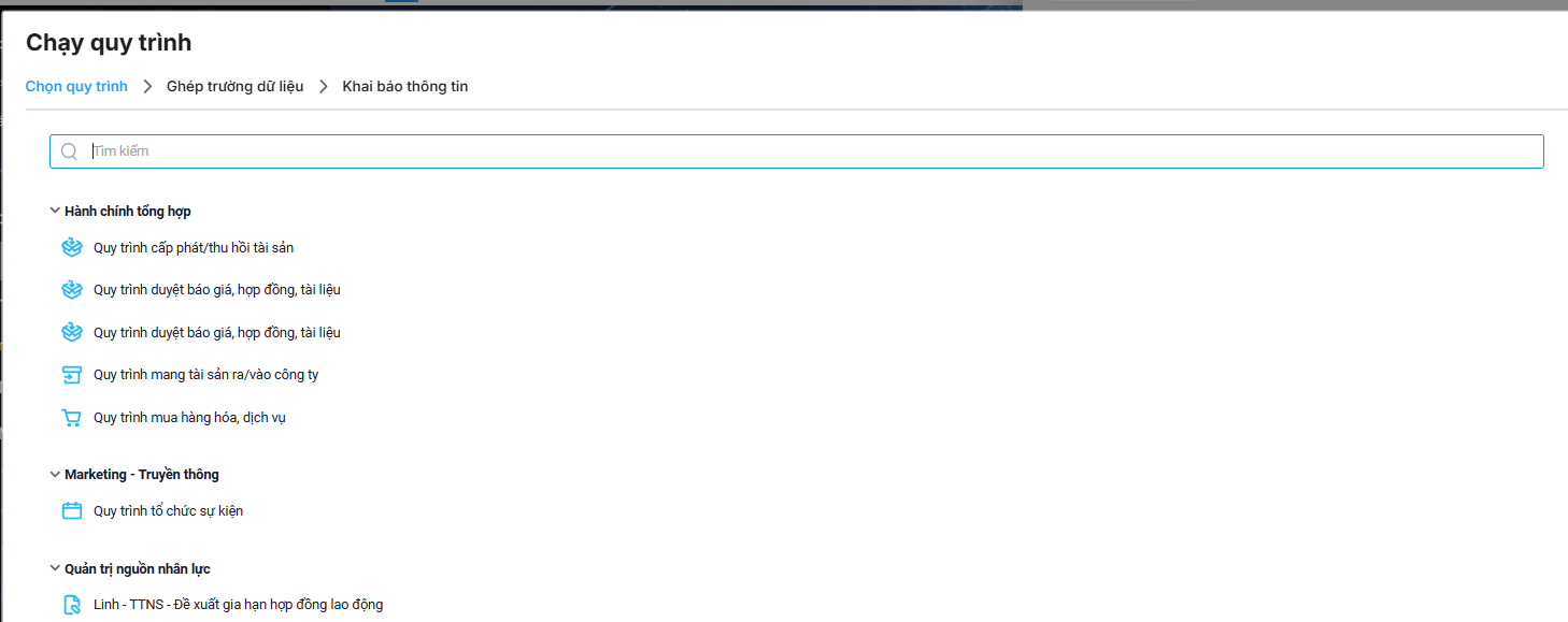 - Hướng dẫn khởi tạo quy trình theo từng công việc.