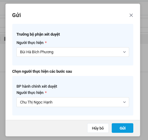 Bước 5: Nhấn Gửi, và chọn người phê duyệt lượt chạy.