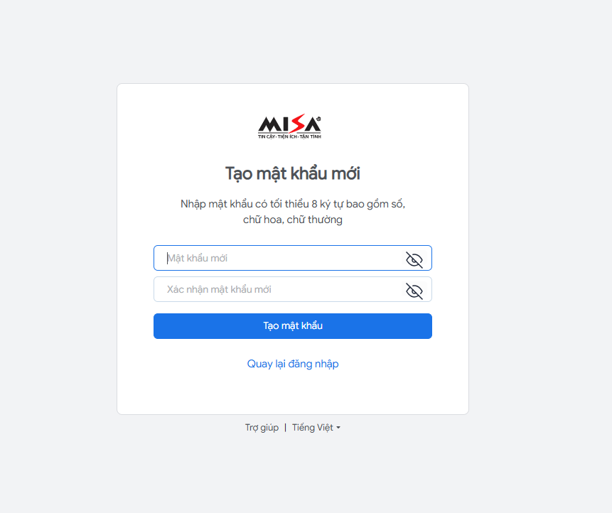 Bước 4: Thiết lập lại mật khẩu mới, sau đó nhấn Tạo mật khẩu, đăng nhập lại với mật khẩu mới vừa tạo.