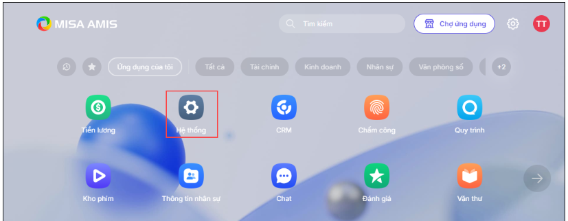 Bước 1: Vào ứng dụng Amis Hệ thống