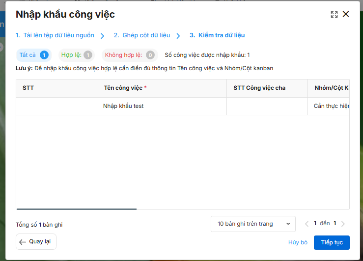 • Thiết lập ghép cột, kiểm tra dữ liệu và hoàn thành nhập khẩu