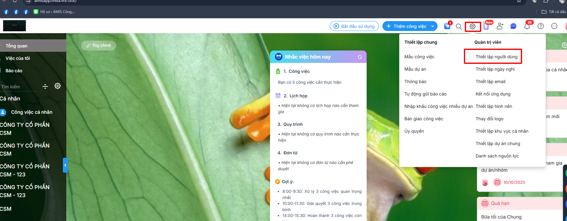 Cách 1: Thêm người dùng của ứng dụng AMIS Công việc trên Hệ thống (System)
