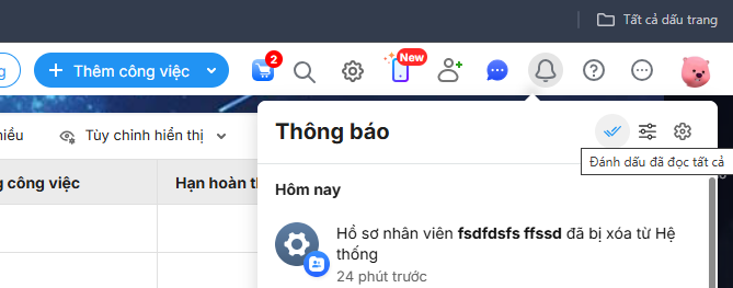 Bước 1: Tại biểu tượng quả chuông thông báo\ chọn vào biểu tượng![]()