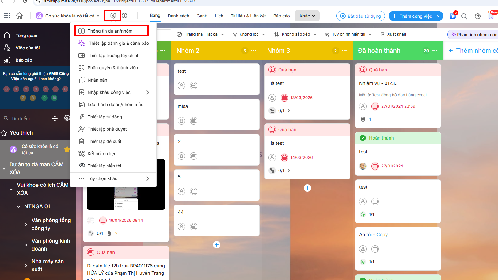 Bài viết hướng dẫn Thay đổi thông tin dự án/nhóm trên phần mềm AMIS Công việc, giúp đáp ứng nhu cầu cần chỉnh sửa lại thông tin của các dự án/nhóm sau khi đã tạo.