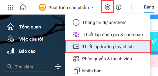 - Cấu hình trường: người quản lý dự án hoặc người có quyền thiết lập trường tuỳ chỉnh.