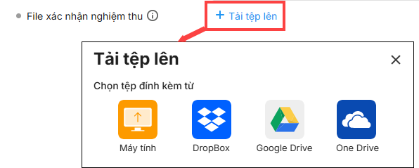 2. Đính kèm file vào trường tùy chỉnh công việc