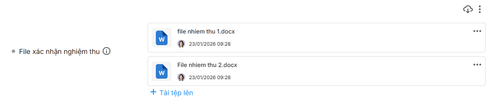 - Các thao tác đính kèm, chia sẻ, tải xuống file hành xử giống phần Tệp đính kèm hiện có.