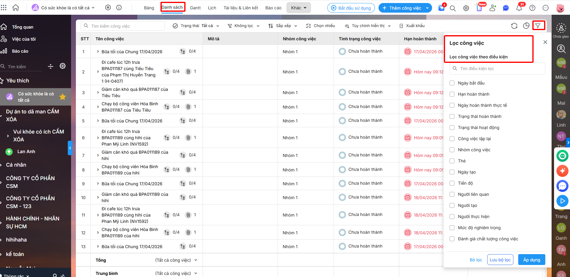 Bài viết hướng dẫn sử dụng tính năng Khôi phục/Lưu trữ/Xóa một hoặc nhiều công việc cùng lúc không mất công thao tác từng công việc giảm bớt thời gian thao tác.