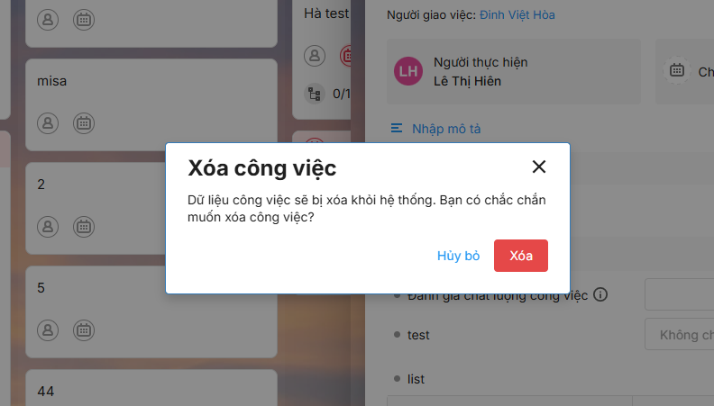 Bước 3: Xác nhận Xóa để xóa công việc.