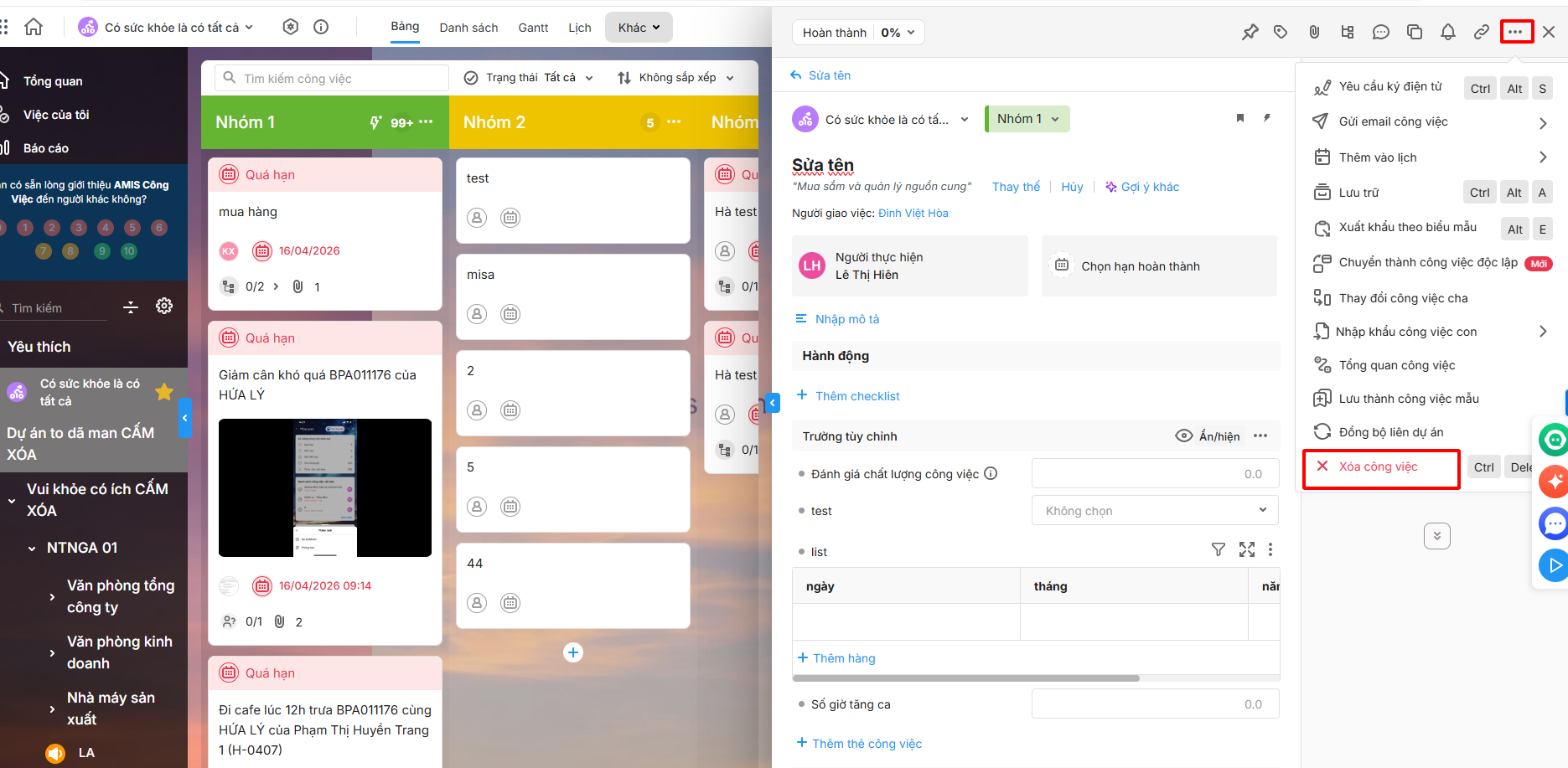 Bài viết hướng dẫn Xóa và Sửa tên công việc chi tiết trên phần mềm AMIS Công việc, giúp đáp ứng nhu cầu cần chỉnh sửa lại thông tin và xóa công việc sau khi đã tạo.