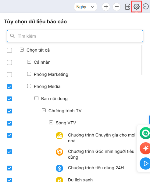 - Sử dụng bộ lọc (phòng ban, dự án, thời gian…)