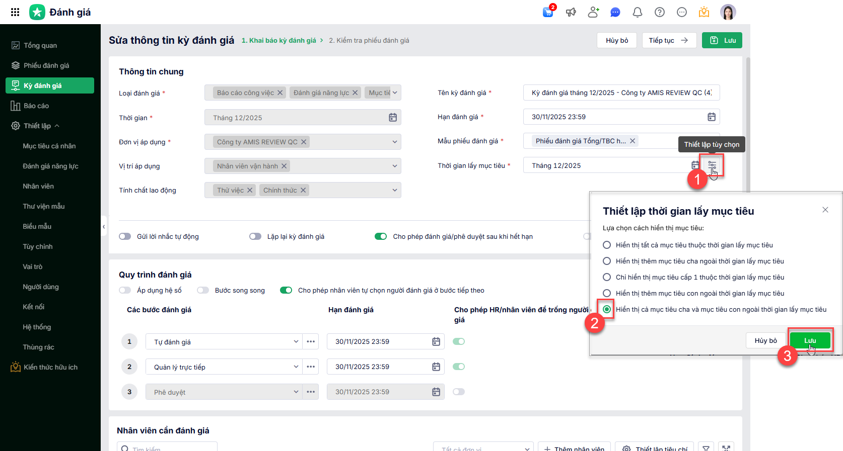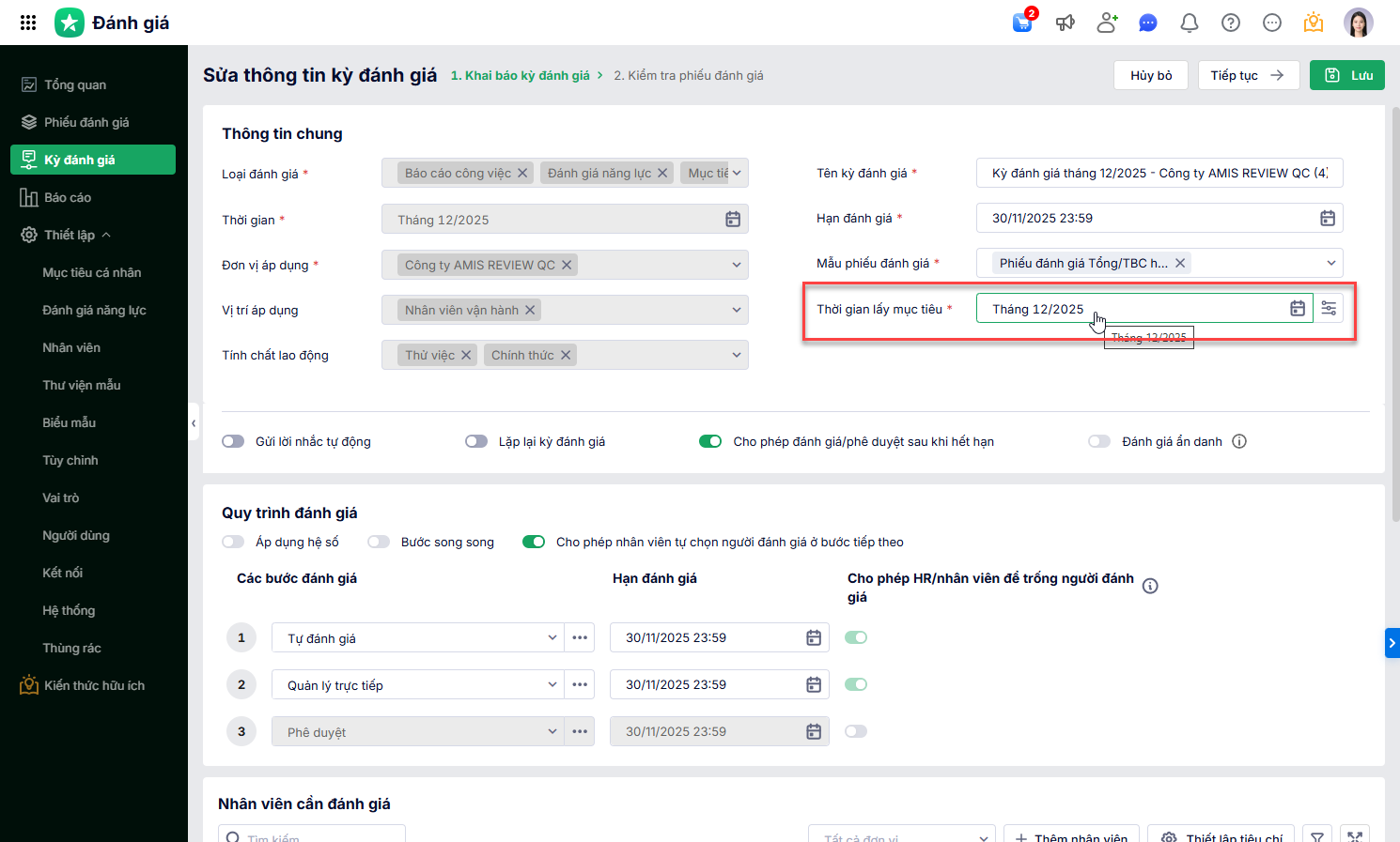 5. Chỉnh sửa thời gian lấy mục tiêu sau khi đã tạo kỳ đánh giá