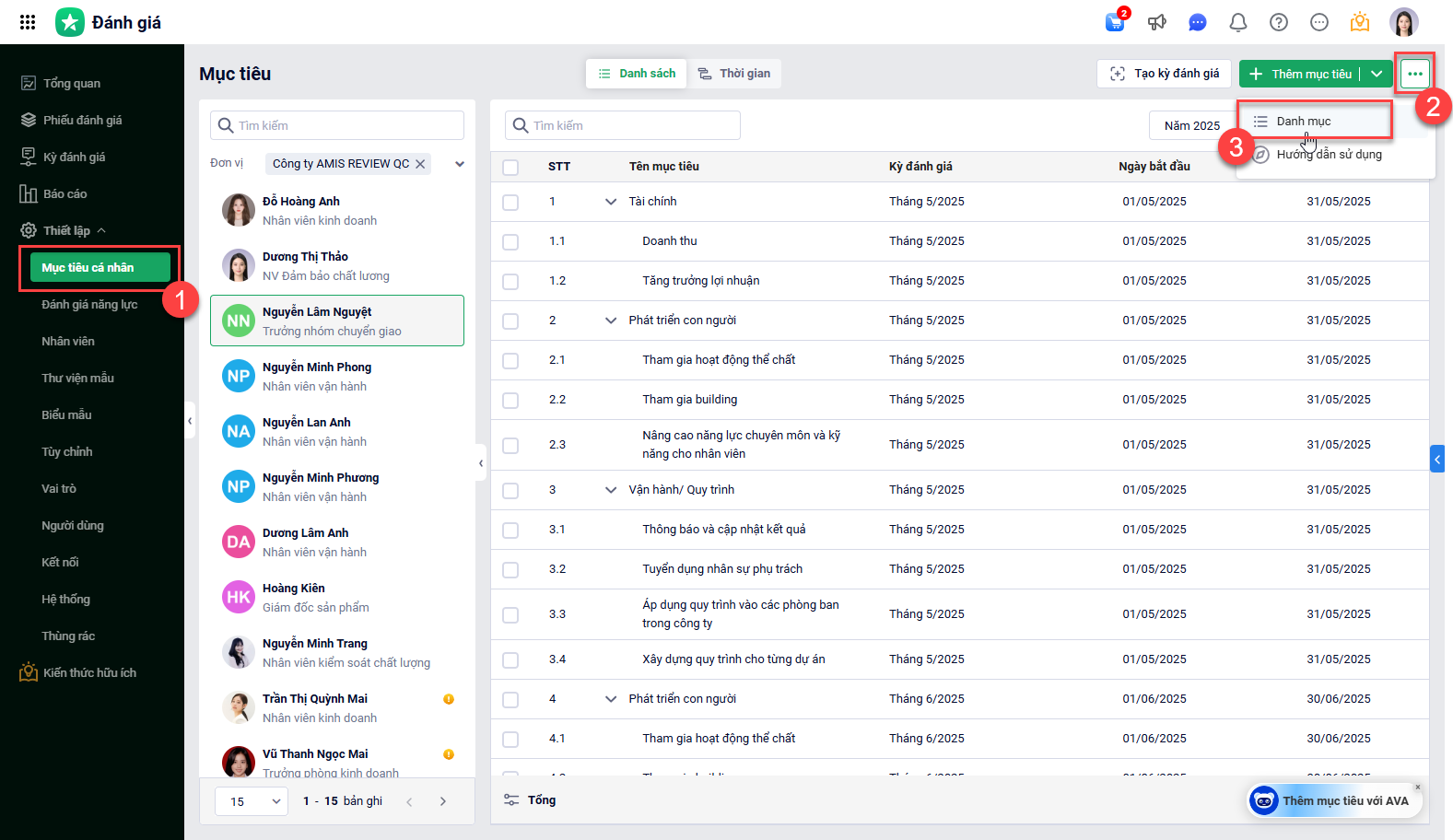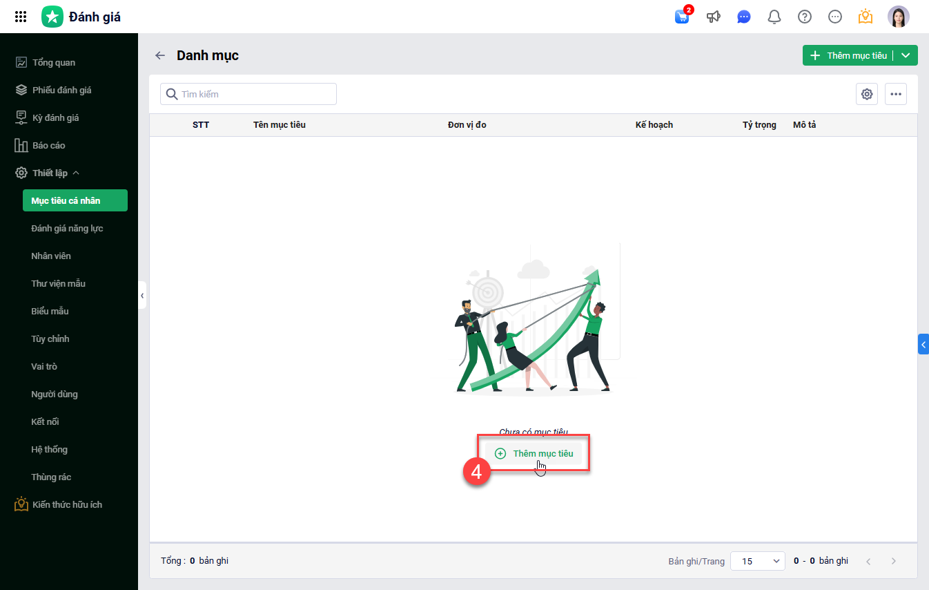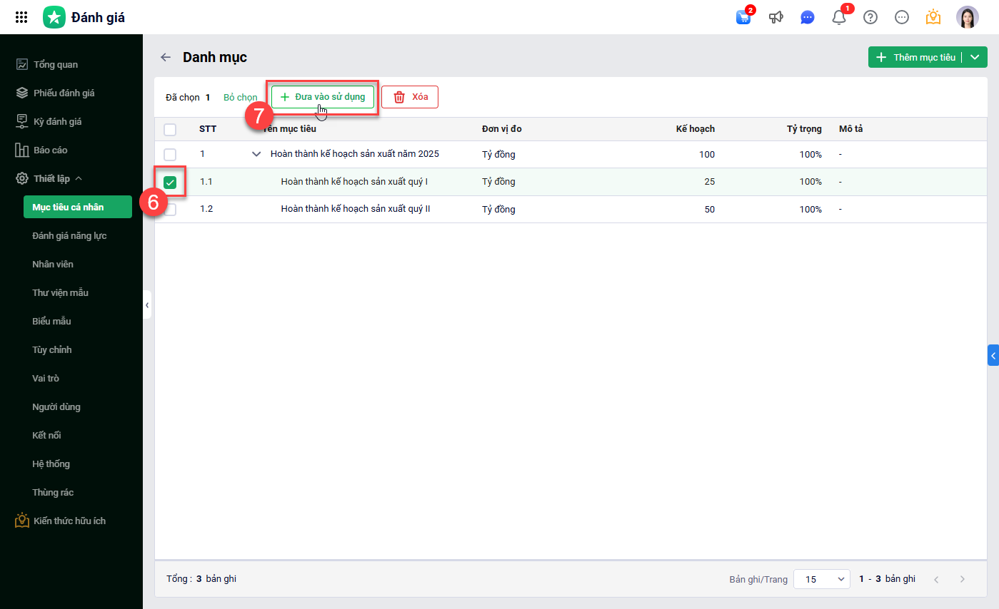 Tại Thiết lập\Mục tiêu cá nhân\chọn Danh mục.