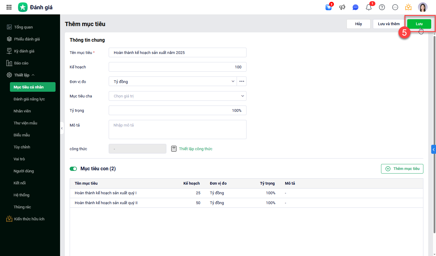 Khai báo thông tin mục tiêu sau đó nhấn Lưu.