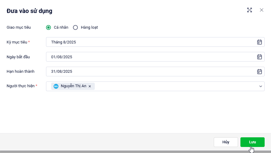 Khai báo thông tin mục tiêu\nhấn Lưu để hoàn thành đưa mục tiêu vào sử dụng.