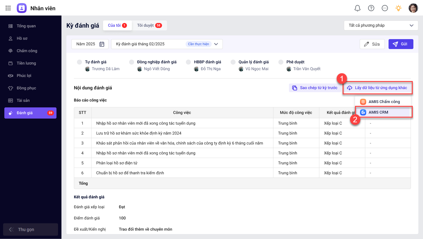 Tại AMIS Nhân viên\Đánh giá\Kỳ đánh giá\chi tiết Kỳ đánh giá\Lấy dữ liệu từ ứng dụng khác\chọn AMIS CRM.
