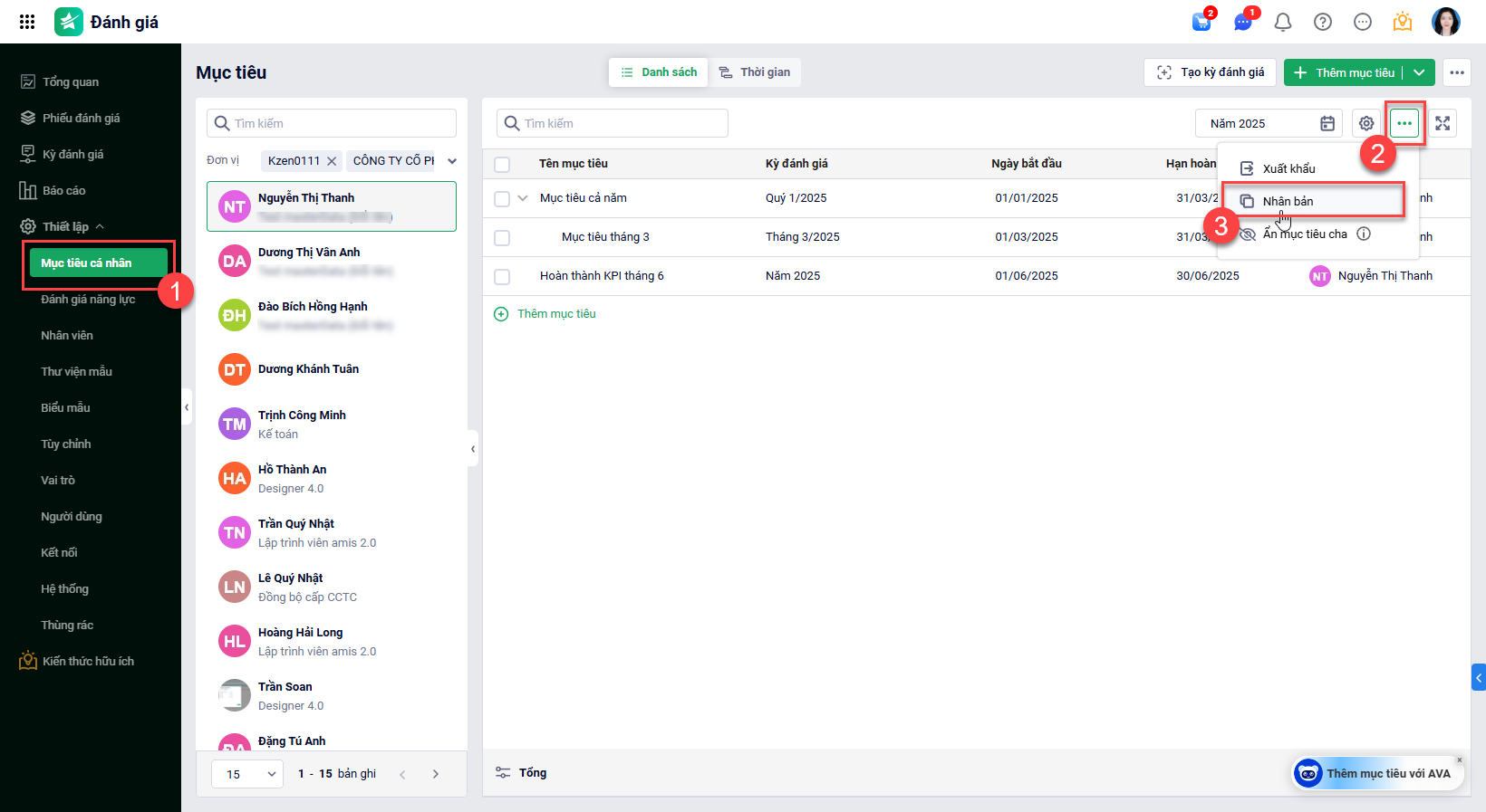 Giúp HR nhân bản bảng mục tiêu cho nhiều nhân viên cùng lúc để tiết kiệm thời gian trong trường hợp danh sách mục tiêu các phòng ban giống nhau.