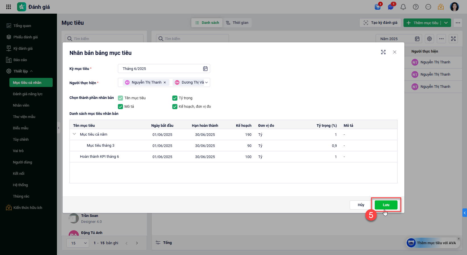 - Kỳ mục tiêu: chọn kỳ đánh giá mục tiêu cá nhân.