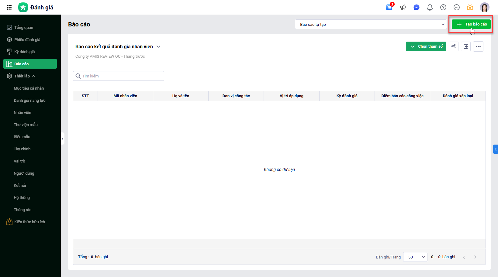 Giúp HR tự tạo báo cáo để theo dõi các chỉ số, kết quả đánh giá theo quy định của đơn vị.