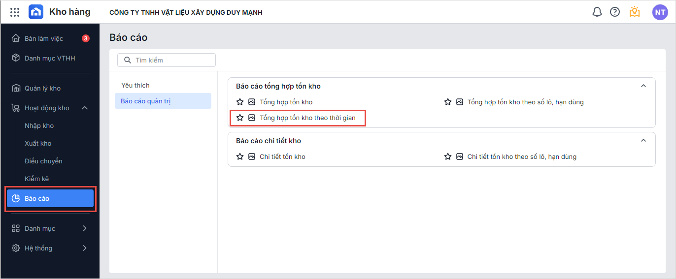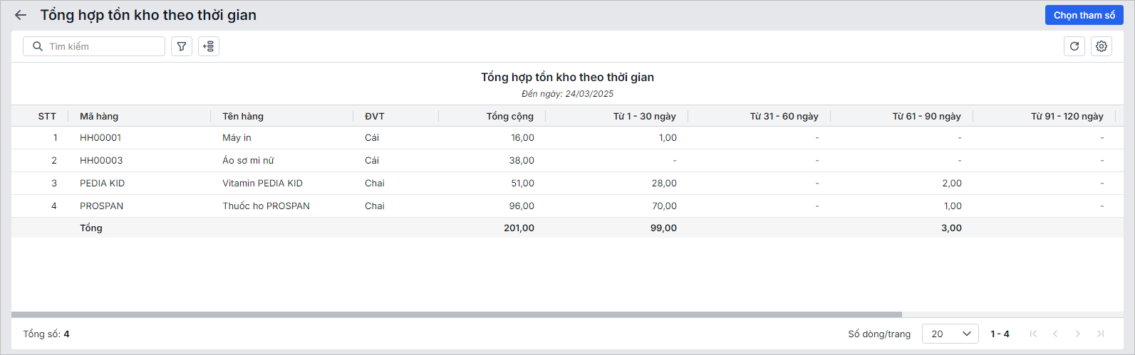 3. Báo cáo tổng hợp tồn kho theo thời gian