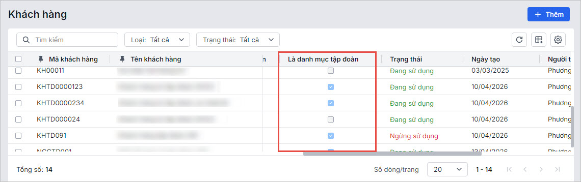 • Chương trình tự động đồng bộ danh mục khách hàng dùng chung từ tập đoàn về và đánh dấu Là danh mục tập đoàn để đảm bảo đồng nhất dữ liệu.