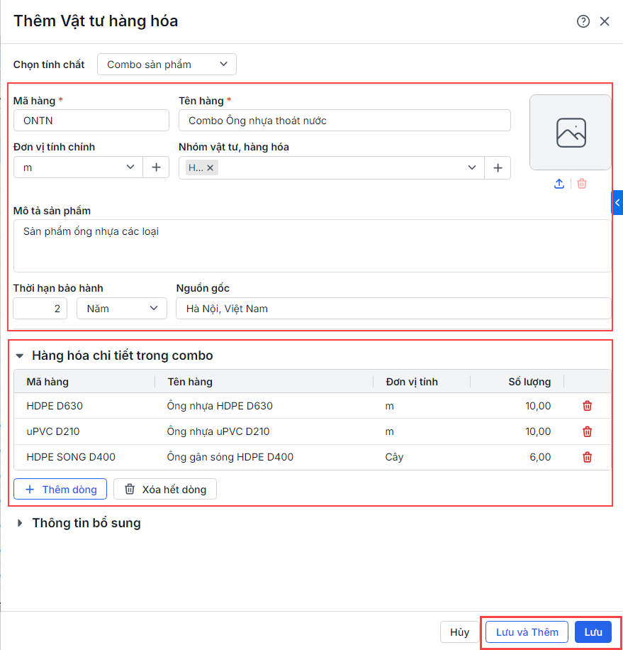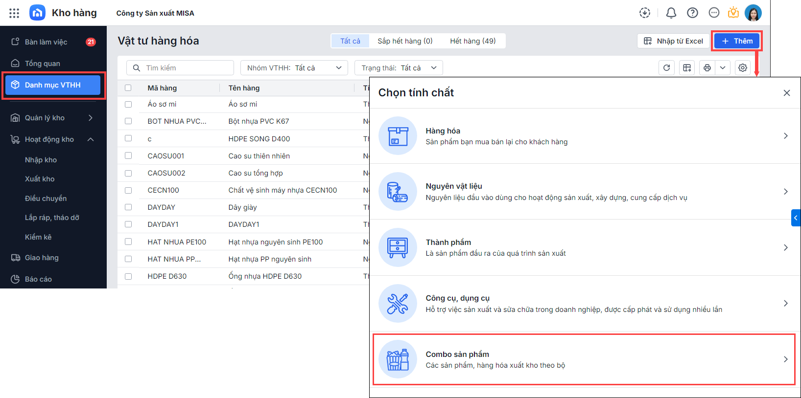 1. Thêm Combo VTHH