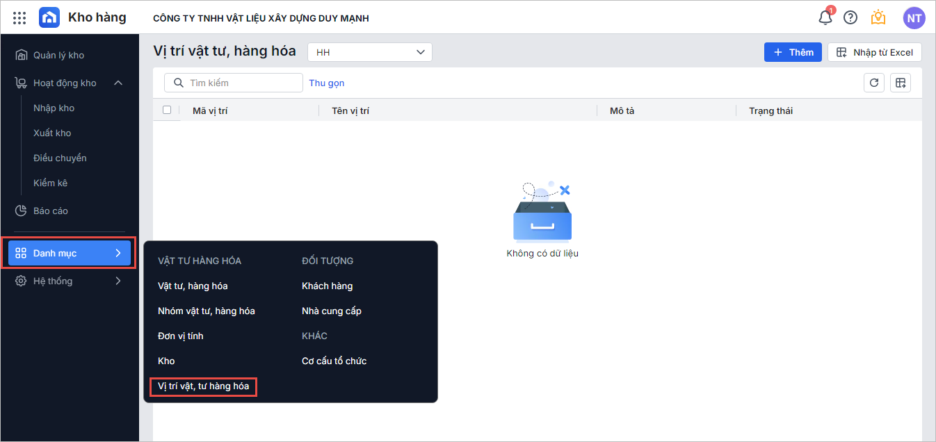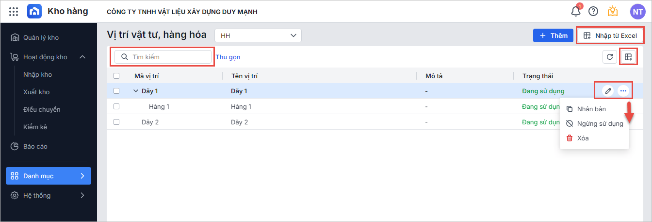 - Người dùng phải được phân quyền Thêm/Sửa danh mục vị trí thì mới thực hiện được chức năng này.