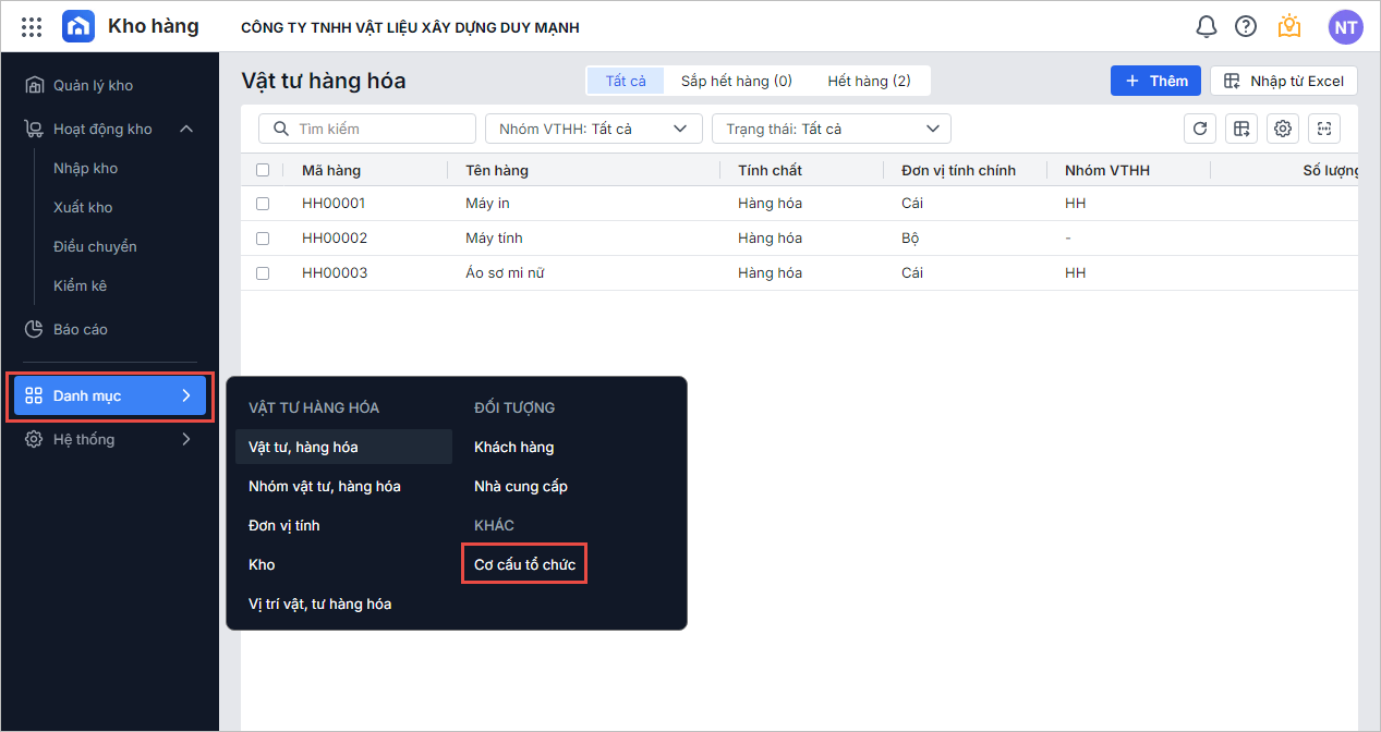- Vào menu Danh mục\Nhóm Khác. Chọn Cơ cấu tổ chức