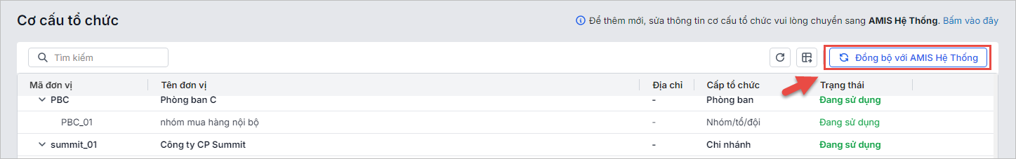 - Chọn chức năng Đồng bộ với AMIS Hệ thống.