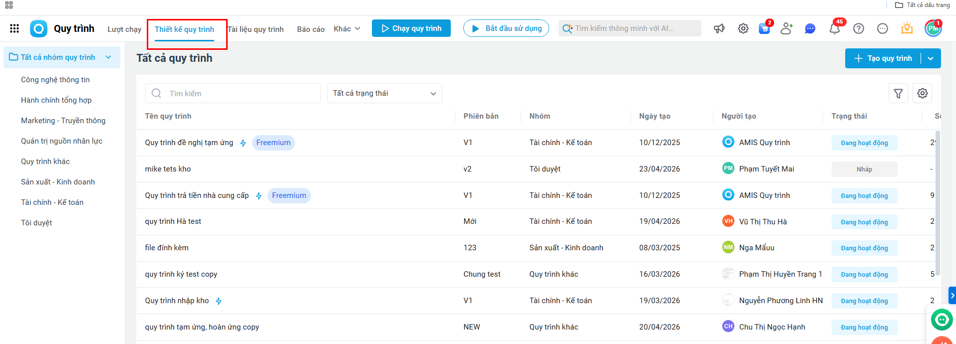 Bước 1: Trên AMIS Quy trình\ Truy cập Thiết kế quy trình.