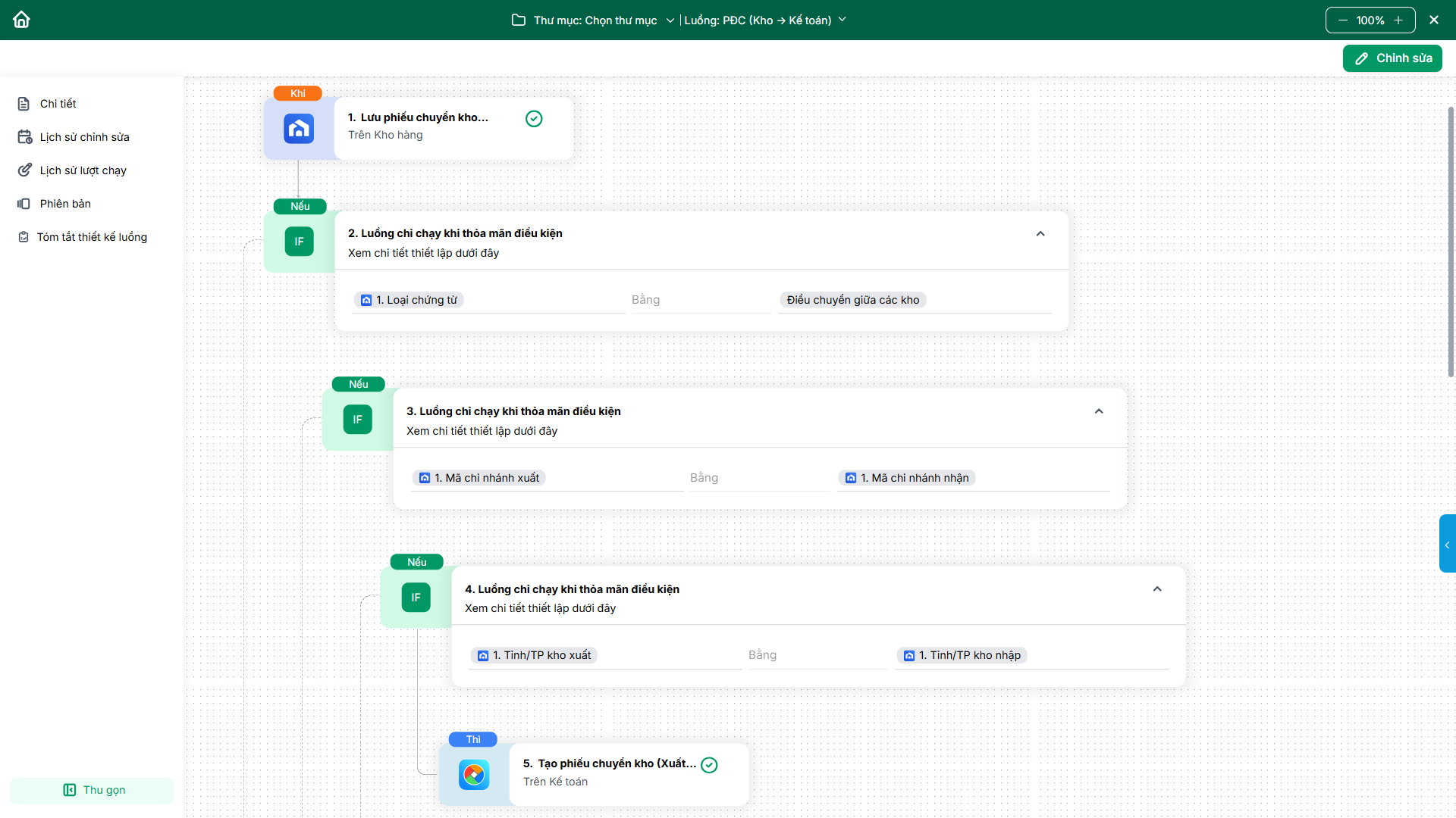 Lưu ý: Để tự động hóa luồng điều chuyển hàng hóa, anh/chị cần thiết lập khi hoàn thành phê duyệt Yêu cầu điều chuyển trên AMIS Quy trình thì tự động sinh Yêu cầu điều chuyển trên AMIS Kho hàng. Xem hướng dẫn chi tiết >>.