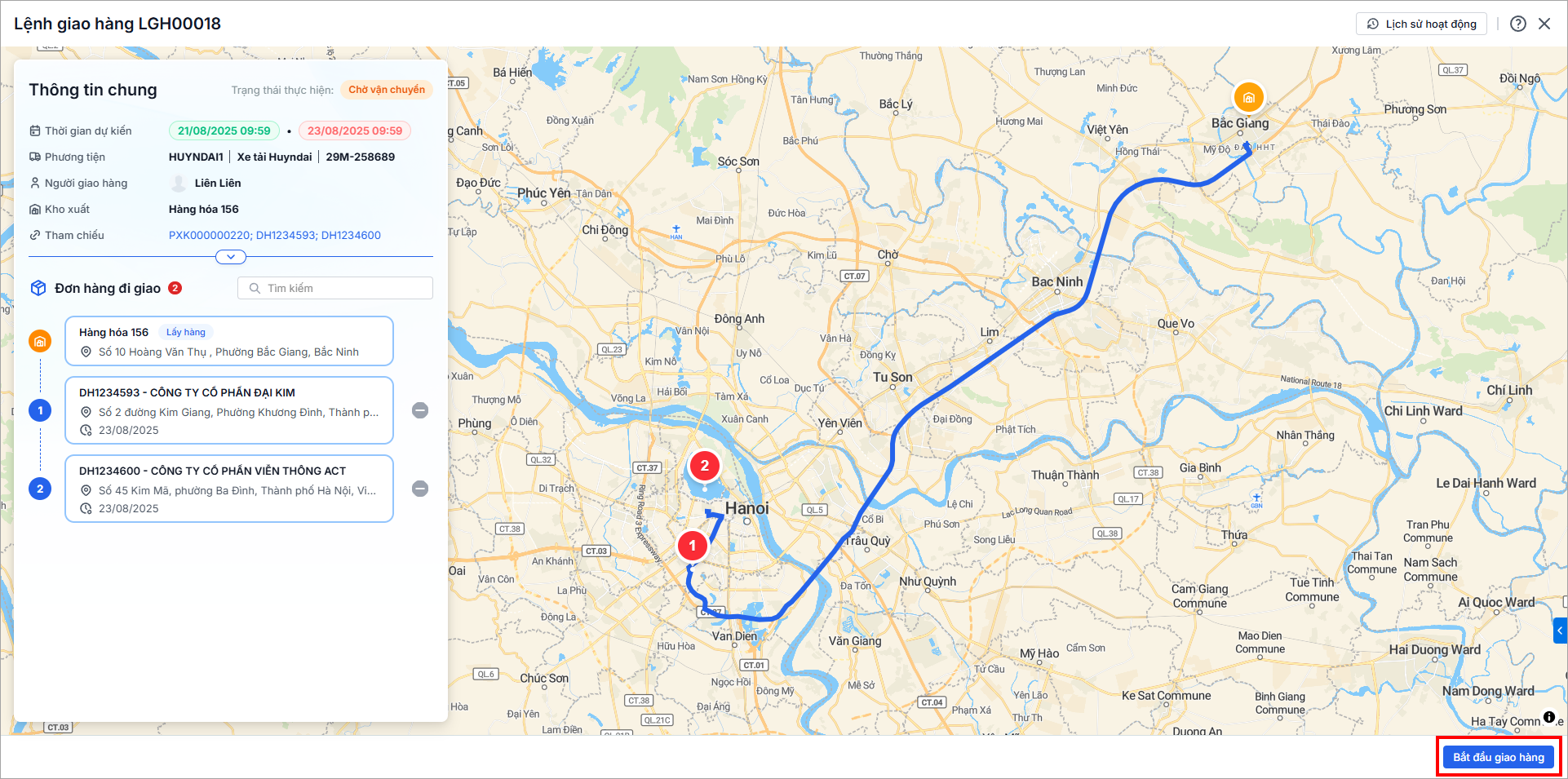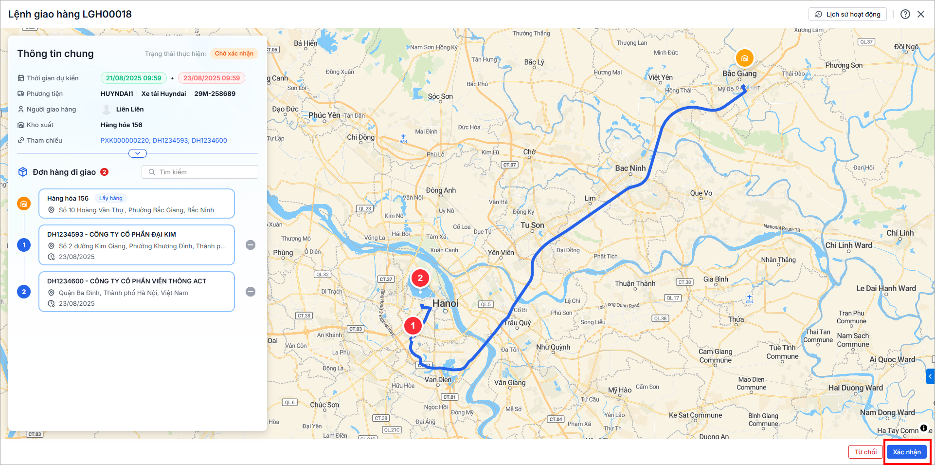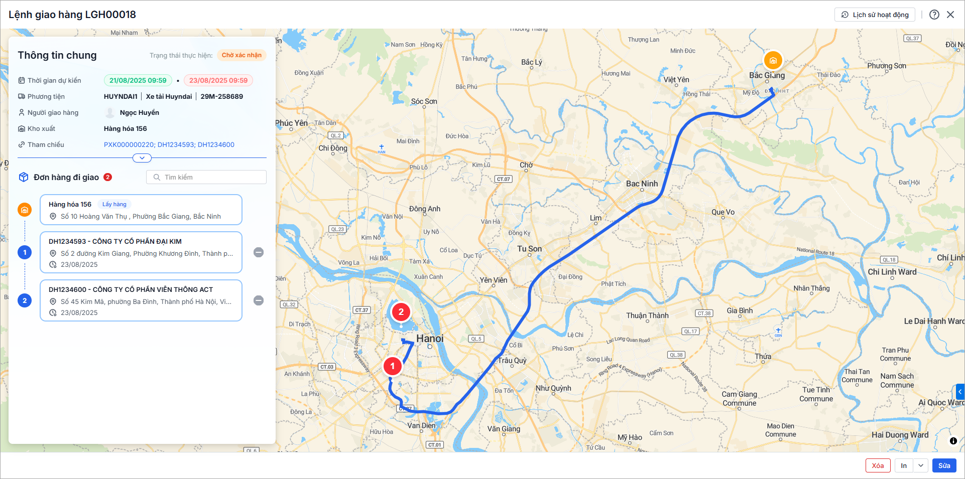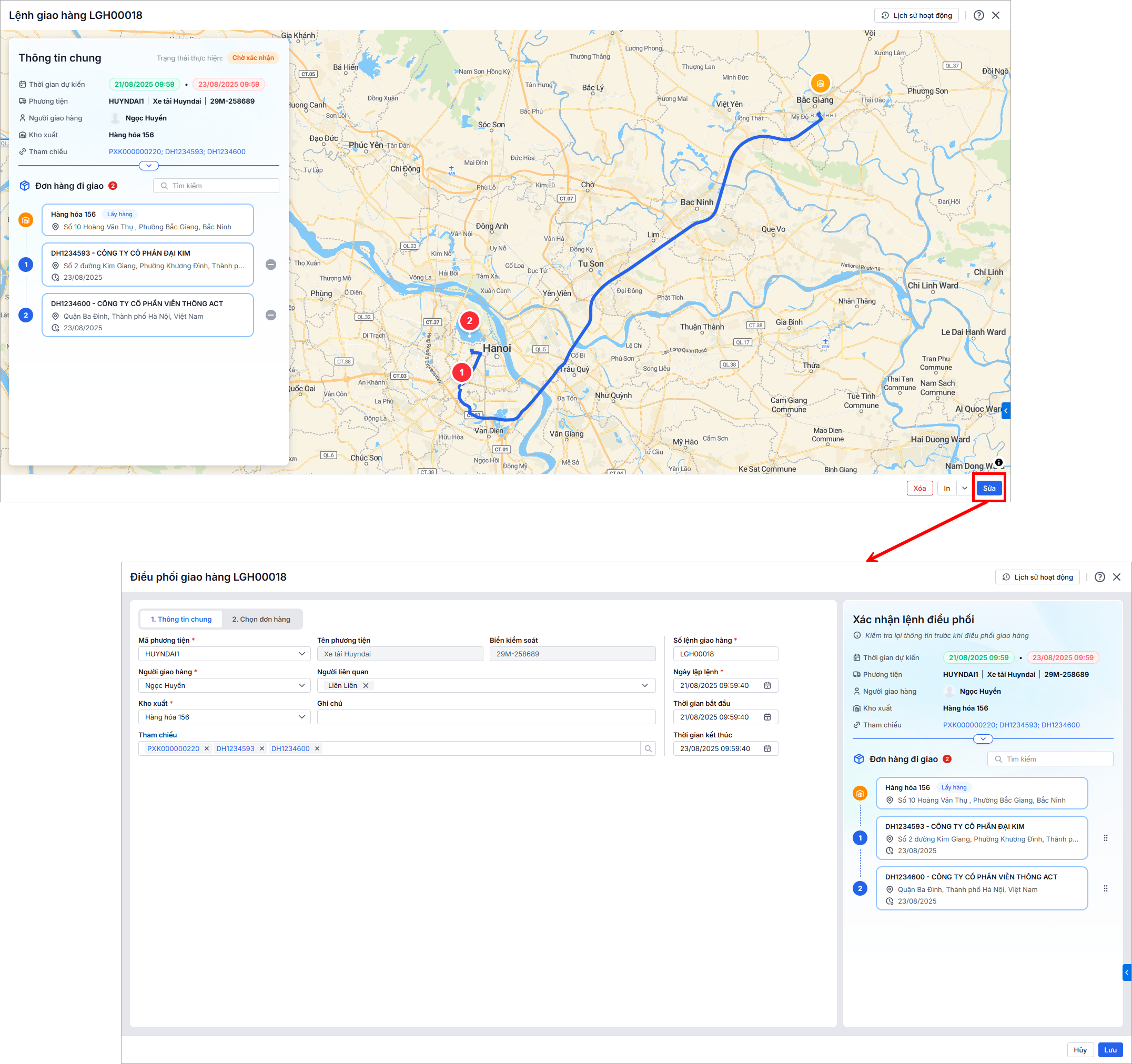 Cho phép người dùng xem chi tiết lệnh điều phối và cập nhật trạng thái giao hàng, giúp doanh nghiệp dễ dàng theo dõi tiến độ và tình trạng giao hàng.
