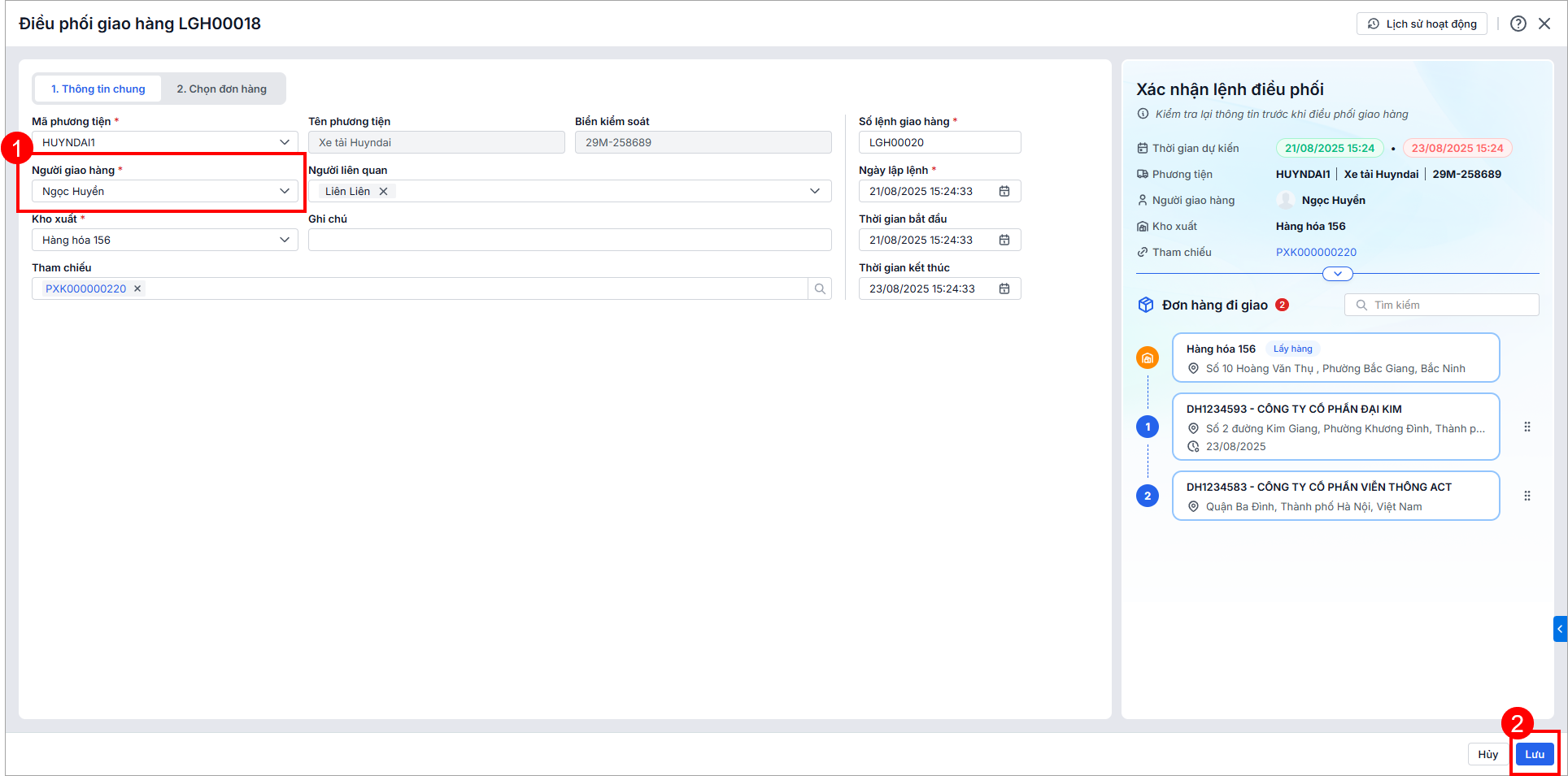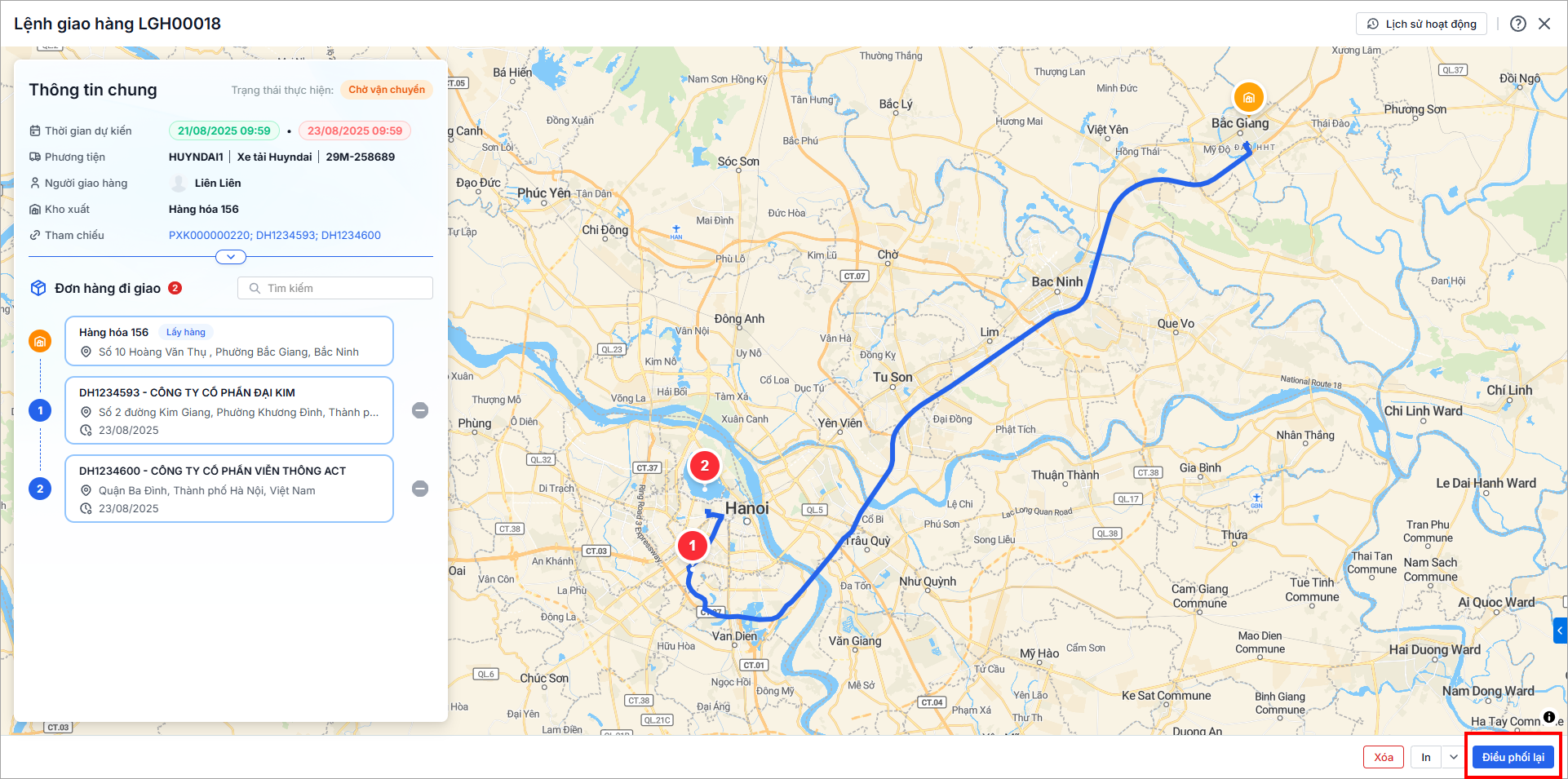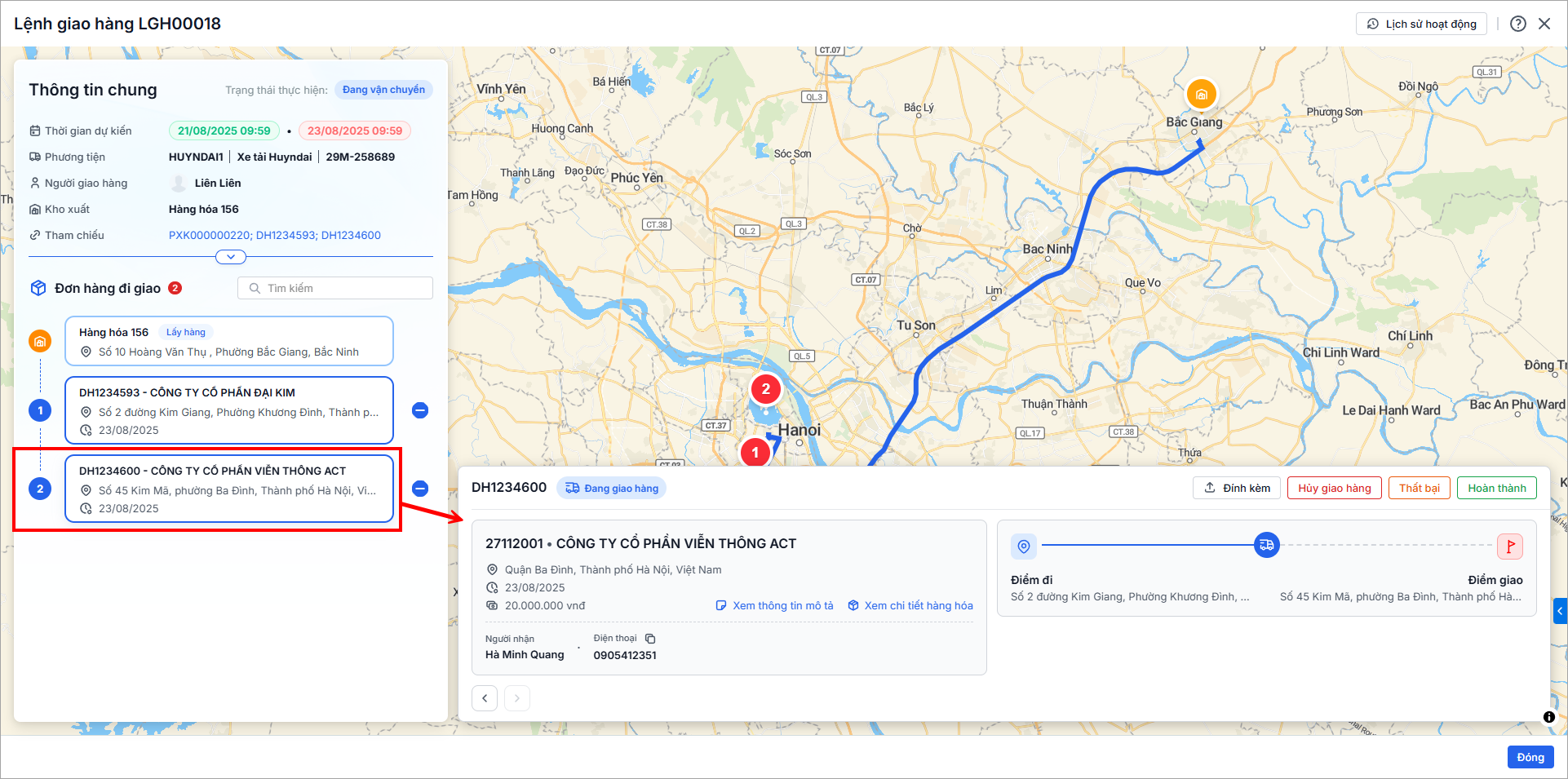 - Thông tin chi tiết của Lệnh điều phối giao hàng