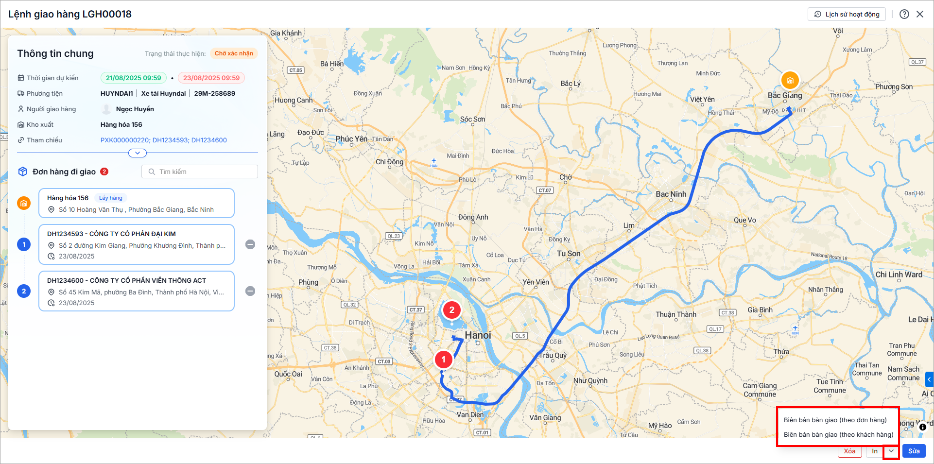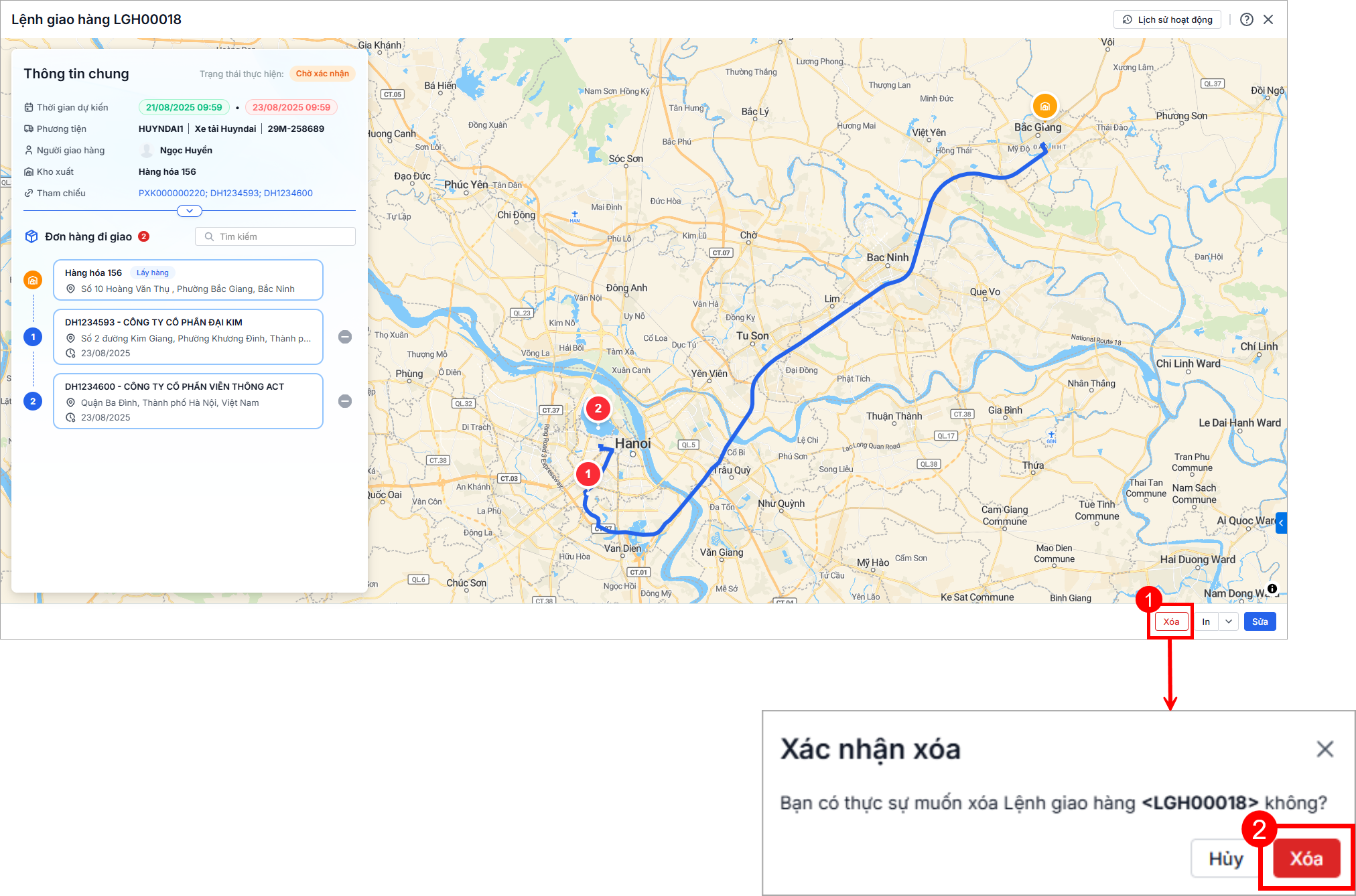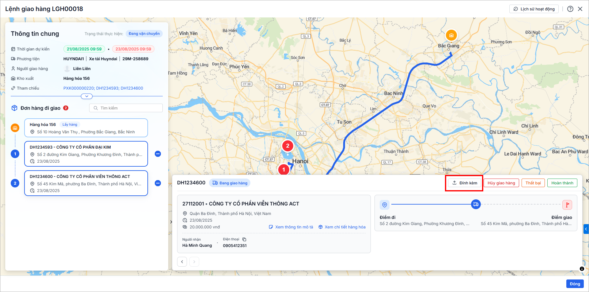 - Thông tin chi tiết của Lệnh điều phối giao hàng