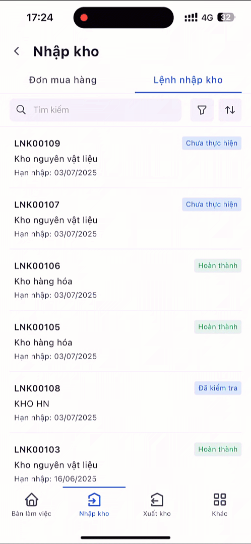 Lệnh nhập kho (mobile)