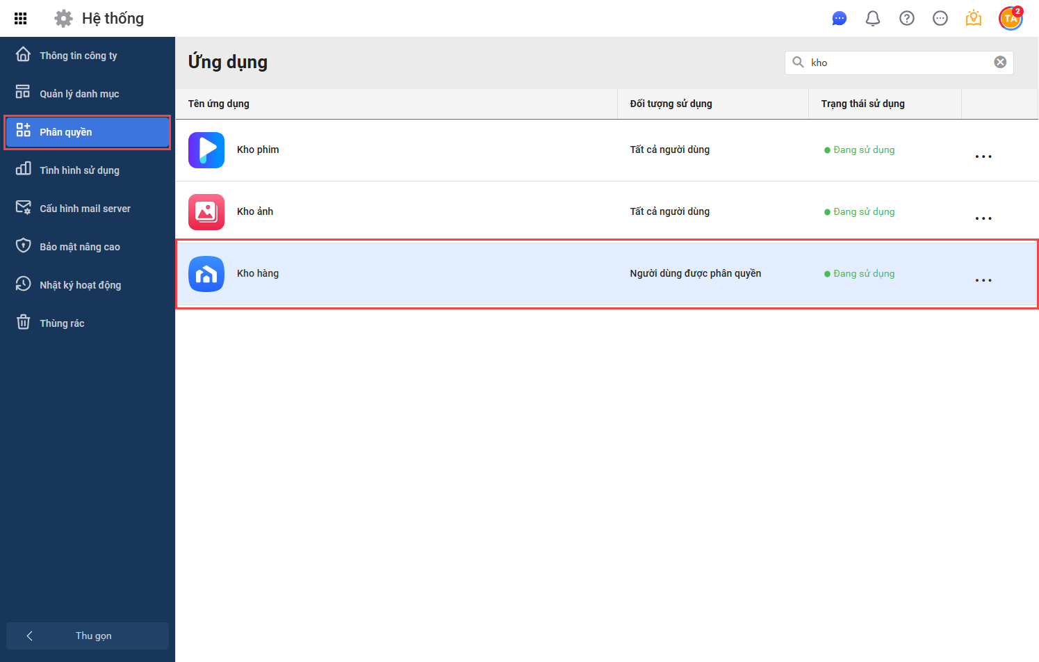 Bước 2: Phân quyền người dùng vào ứng dụng AMIS Kho