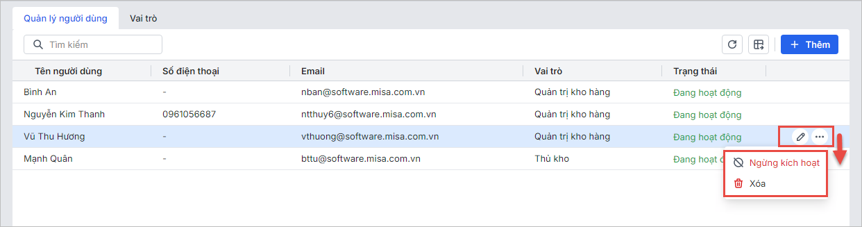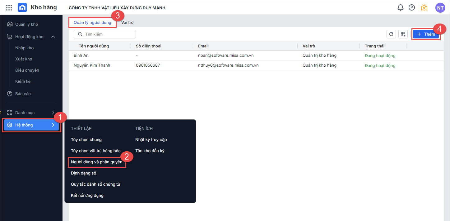 Cách 2: Thêm người dùng trên AMIS Kho hàng