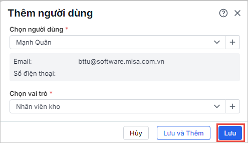 2.1. Thêm người dùng vào AMIS Kho hàng trên AMIS Kho hàng