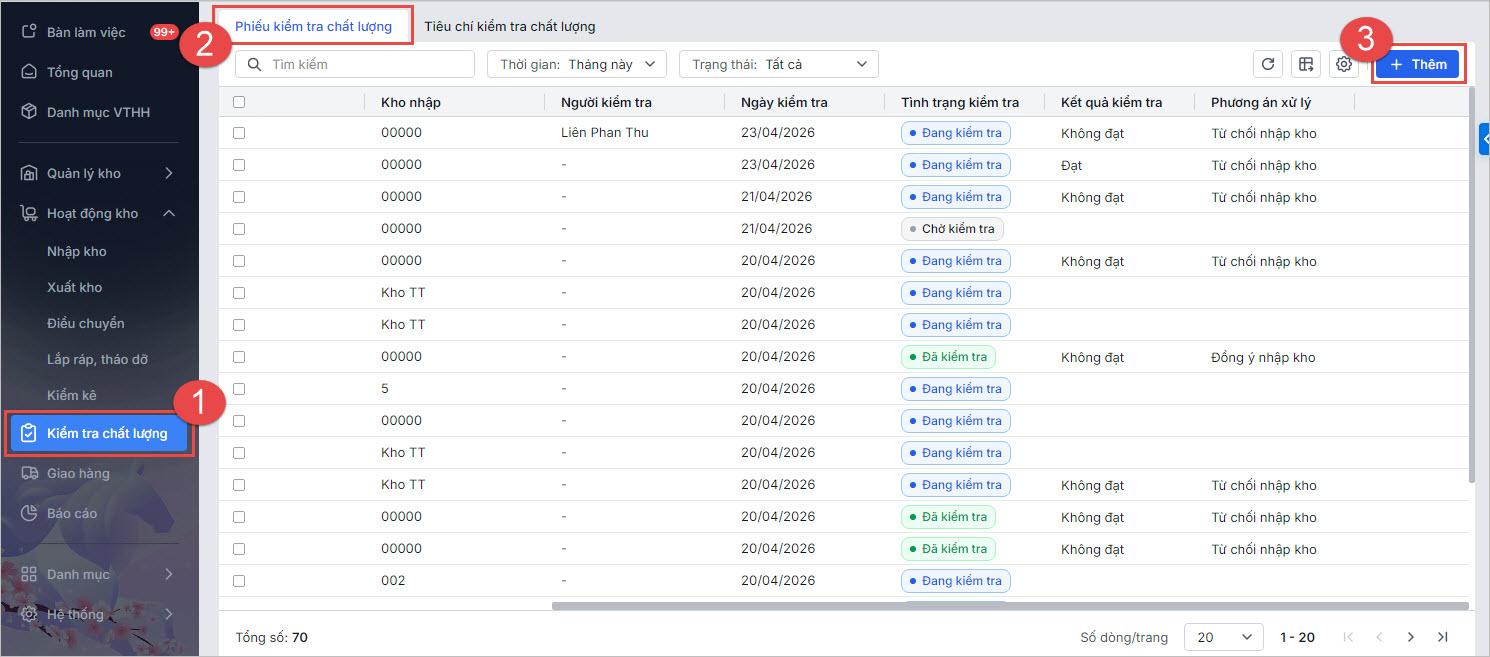 2.2. Quản lý danh sách phiếu kiểm tra chất lượng