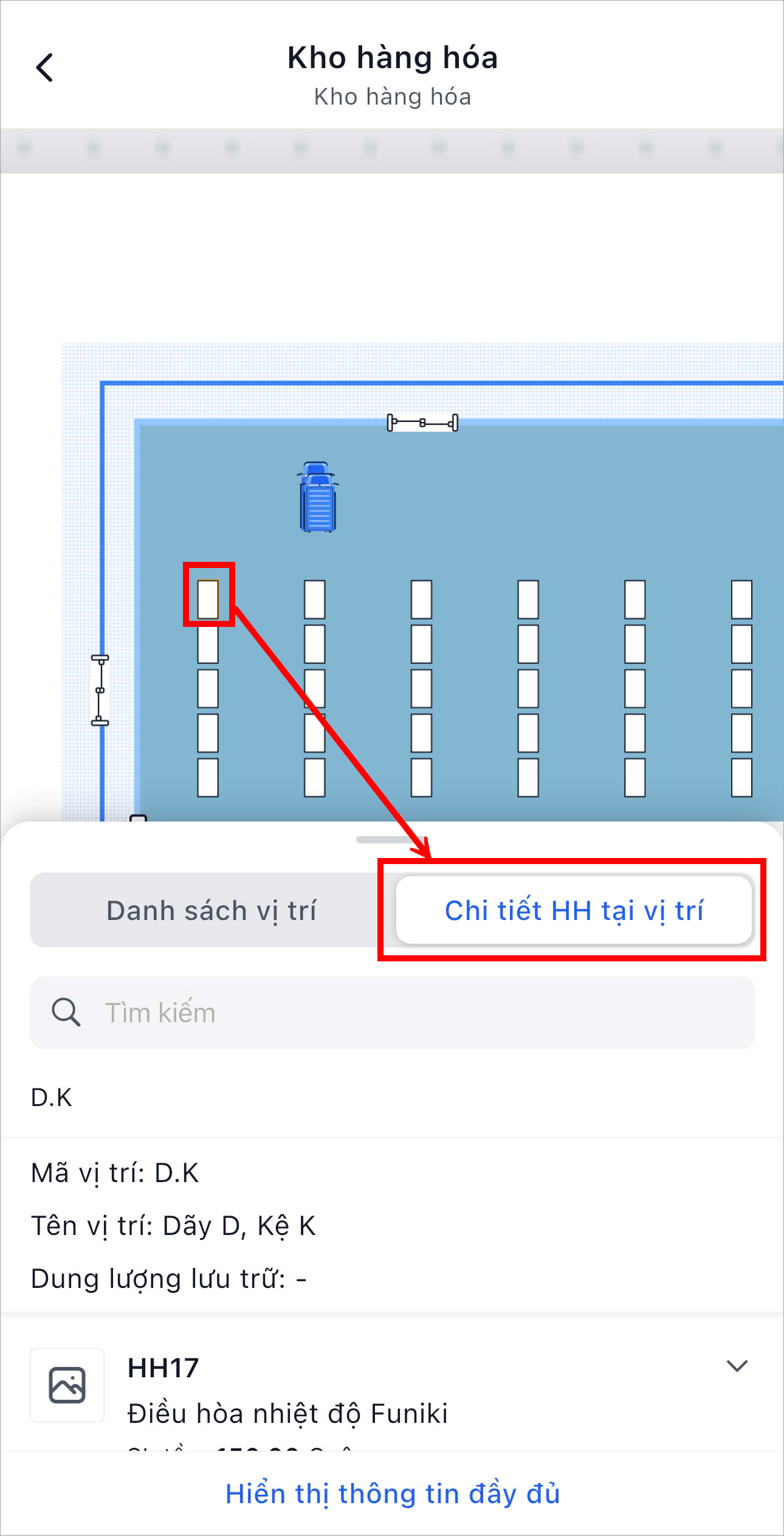 Nhấn vào dòng Sơ đồ kho để xem chi tiết.