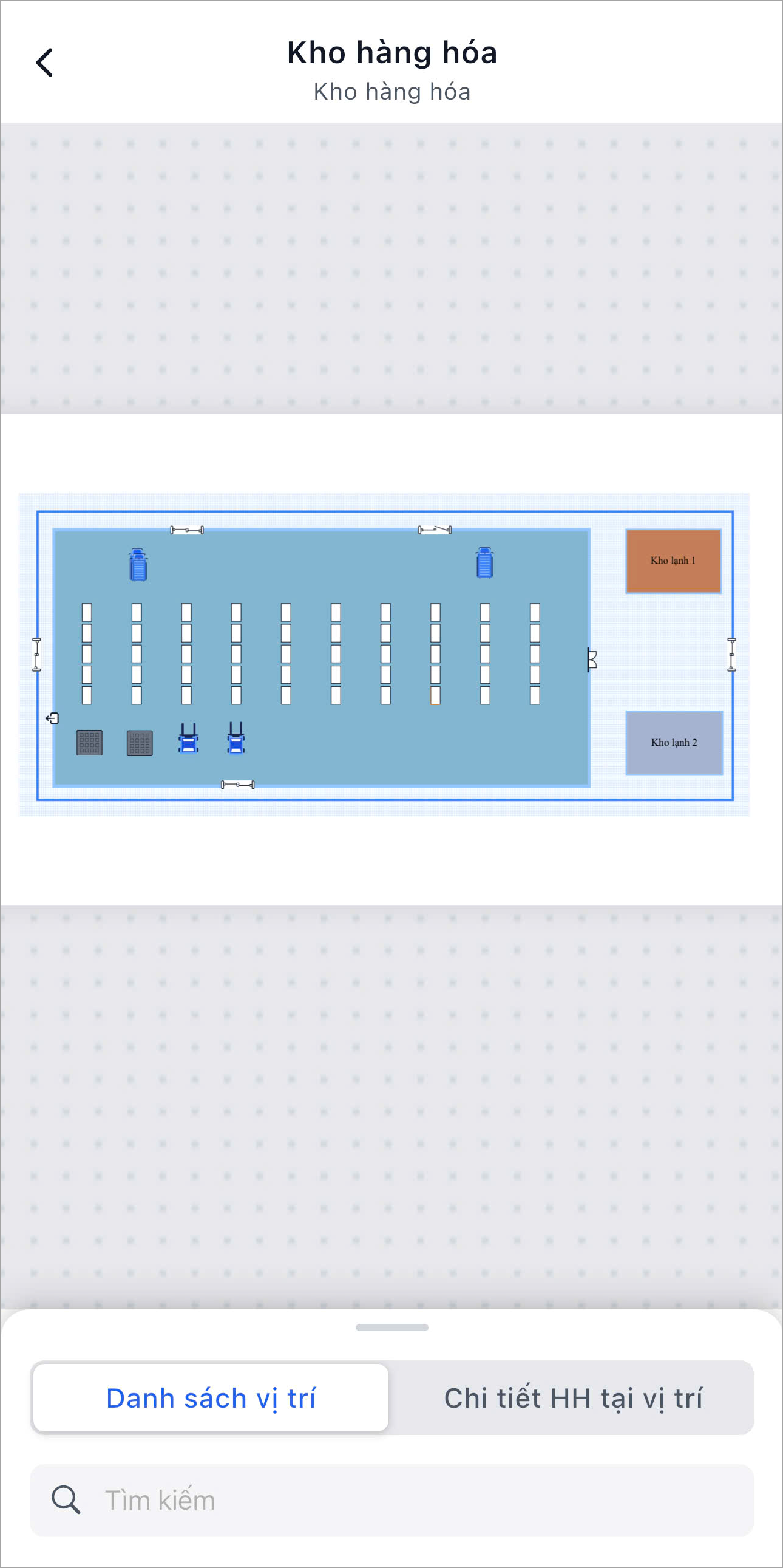 Cho phép quản lý kho theo từng vị trí, khu vực trên mobile.