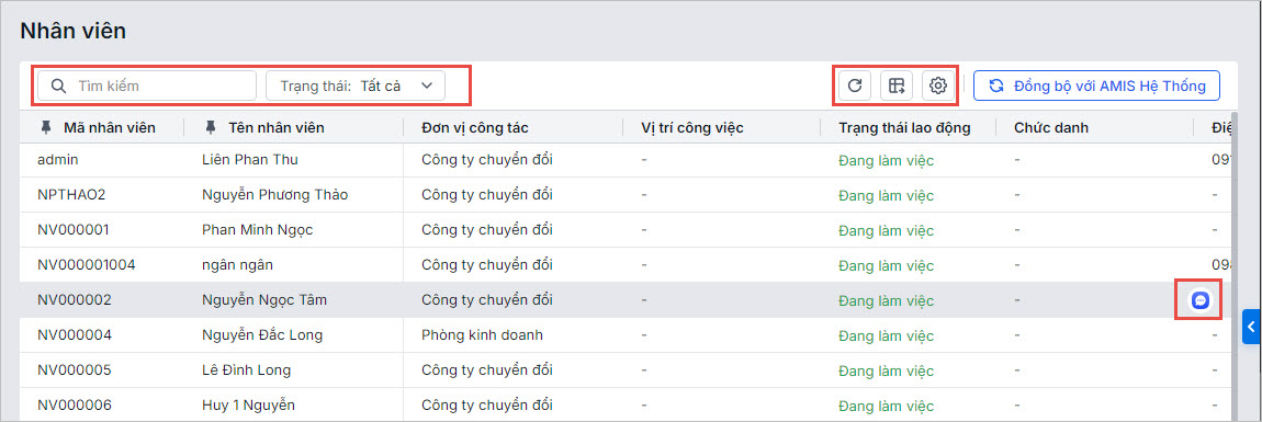 Bước 2: Nhấn Đồng bộ với AMIS Hệ Thống để đồng bộ danh mục nhân viên từ AMIS Hệ thống.
