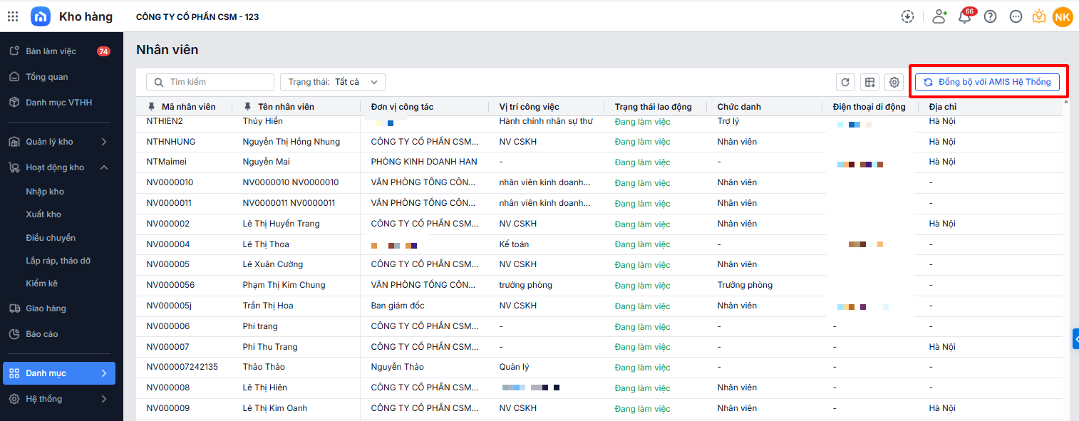 Bài viết hướng dẫn quy trình đồng bộ và quản lý danh mục nhân viên trên AMIS Kho hàng. Việc đồng bộ dữ liệu từ AMIS Hệ thống giúp đảm bảo thông tin nhân viên luôn nhất quán, hỗ trợ tìm kiếm, xuất excel và quản lý hiệu quả, đồng thời hạn chế thao tác chỉnh sửa trực tiếp trên AMIS Kho hàng.